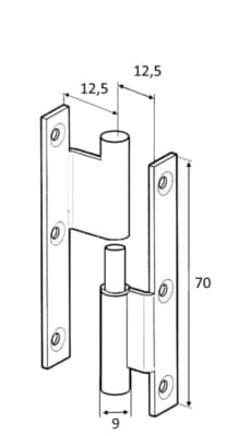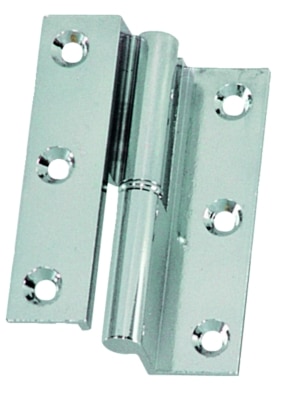 Home » Shop » Dekbeslag » Hang en sluitwerk » Scharnieren » Paumelle scharnier messing verchroomd rechts 70 x 45 mm