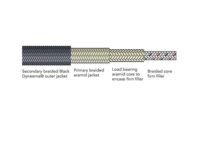 Zowel de kern constructie als de mantel van de Marlow Anti-torsielijn zijn